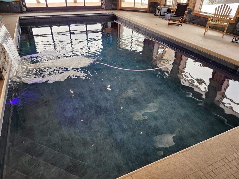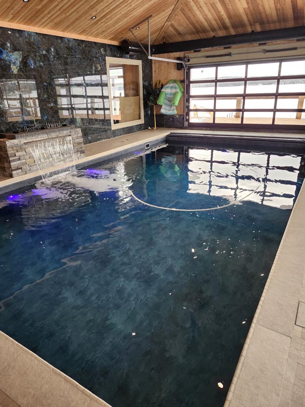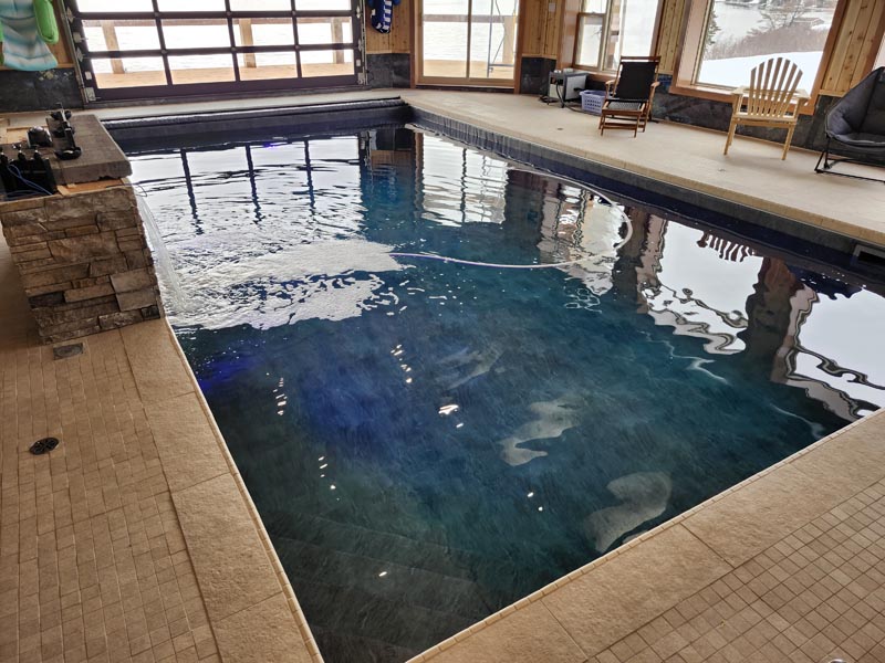 Every custom pool begins with a strong foundation. Our team uses ICF (Insulated Concrete Form) structures, finished with commercial-grade PVC membrane liners that are 80 mils thick and welded on-site for a watertight, long-lasting seal. This creates a pool that stands up to Newfoundland winters while still looking great. You can choose from a range of print options, from natural slate textures to bold colour palettes, so the liner finish matches your style or preferences.